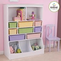 This storage unit is perfect for our play room. It fits everything the kids have and now it looks nice and organized. I was really impressed with the quality of the item and it was easy to put together. I only wish you could choose the color of bins you want, but they're standard size, so we had some that fit. Love it!!