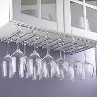 This stemware rack was easy to install, looks good, and performs well. I am a professional kitchen designer and installer, and elected to use this rack rather than the one available from the cabinet manufacturer. It worked our better, as we are using a low profile flourescent light fixture above it. We mounted the back side of the rack to the extended back of the cabinet, and made some spacers for the front installation point. The recessed light is above the rack, and is hardwired, so it is not necessary to switch it on and off at the fixture, which is a must. It is a little difficult to relamp the fixture, but it can be done without removing the rack. The effect of the stemware lit from above is quite dramatic. I will definitely use this installation detail again.The rack was very easy to install and felt pretty sturdy even after only 2 screws (no drill needed, just screwed right into the bottom of wooden shelf). Our nice Riedel glasses (which have 3.5 inch bases) fit very nicely. Would definitely recommend it.This wine rack looks really nice, installs easily and takes up virtually no space with its under counter design. Installation took about 5 minutes with a cordless screwdriver and 6 provided screws. The front-to-back fit is fairly snug, so if your cabinets have any of those plastic stapled in support brackets you will have to remove/move them first.Thursday, October 3, 2013