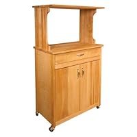 I just received this cart. It came in two very heavy boxes. It took two strong men a whole afternoon to put together--not easy. Some of it is hard wood, but the sides are particle board. It is missing the shelf pegs so I have to go buy some. The description doesn't tell you that the wood is rough and unfinished. It needs to be sanded, especially the edges, and you have to use furniture or mineral oil on the wood. Also, the drawer doesn't close because the butcher block is warped. For this amount of money I expected something much better. If there was a way to send it back, I would.