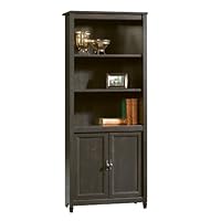 If you're looking for an inexpensive but solid-looking piece of furniture, this is it. I didn't have any problems with the hardware or the quality of the piece-the back is the wood-grain cardboardy material that all Sauder bookcases have, but it's not cheap looking once it's on. The doors hang well and open and close just fine, and the "estate black" color (a very very dark brown) looks good. I could wish that the bookshelf-hanging holes were a bit less obvious, and that the shelves had some other ledge or niche to keep them from sliding forward in case the shelf tips, but it's a very nice piece for the price.Read Best Reviews of Sauder Edge Water Library with Doors Here