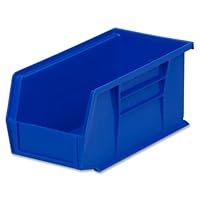 These bins stack very well (only with other bins of same size), hold lots of small to medium pieces, and don't have any corners that things get stuck in. The bins are very rugged. They have room for a label tag in front, and accept front-to-back dividers. A rack is available to hang bins on. Another option (not sold at Amazon) is a clear plastic lid. Bins come in choice of three colors.