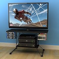 I almost didn't buy this stand because I didn't like the look of the dangling DVD holders. Once I realized they were optional, I was sold. It was relatively easy to put together, and like the other reviewer said, it took about 1/2 hour. A small electric screwdriver is handy if you are doing it alone emphasis on small some of the places are tight.The stand is sturdy, but what I like even more is that it virtually disappears. You don't buy this because you want a piece of furniture that makes a statement you buy it to hold the TV.