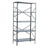 - Standing five-shelf unit made of steel to support a 240-lb. per shelf capacity and to support a 1200-lb. total capacity