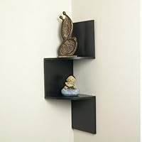 The color is listed as Espresso. To me, it looks black. I interpret Espresso as a very, very dark brown. I think it looks great in our black/white/red bedroom. I suppose if you have brown or wood/earth tones, it might "take on" those colors and not look quite as black.I thought this was really unique looking. But I wasn't impressed when it showed up. Cheaply made and broke when I tried putting it up. Not worth it at all.This shelf isnt worth the money. I put it together, put 2 small items on it, and it broke in half 2 days later.