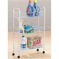 For the price, I guess I shouldn't be surprised, but this is a very flimsy cart. I bought it to use as a rolling spice rack, and the cart can barely handle the spice jars. The one side of the cart has already broken, and I've had to tie it together. Plus, the wheels don't roll smoothly. The picture shows it as a laundry cart, but I honestly don't know how it would handle something as heavy as a detergent bottle. If that is your intended use, look for something made better.Read Best Reviews of Household Essentials Slim Line 3-Tier Metal Storage Cart, White Here
